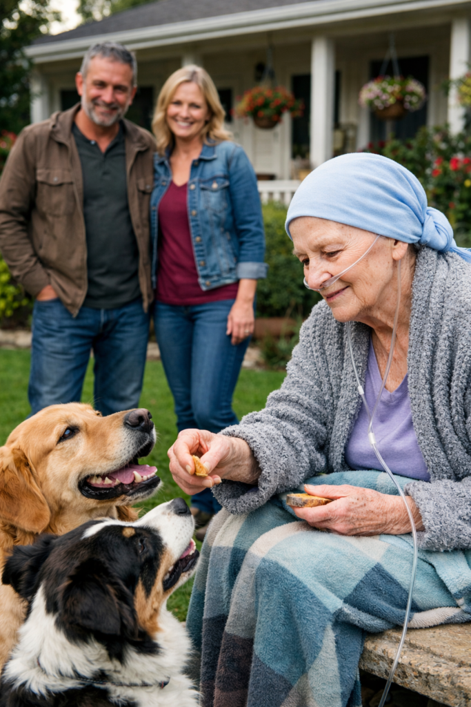 All throughout my marriage to this wonderful and caring woman, I learned from her all about just that. She would stop our morning neighborhood walks for a brief few moments to go and pet all the many dogs we encountered. She loved dogs and befriended all of them. So much so that as she became unable to go walking with me during her cancer treatment period, our neighbors would bring their dogs to our home so she could sit outside and visit with them. She sat there with a bag of treats in hand and visited with dog and master or mistress. She recently slipped deeper into her illness and became unable to go outside, even for a few minutes, and it broke my heart to see this.
